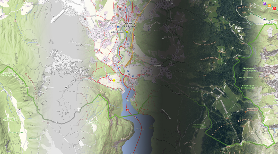 Sechs Kartenstile wurden für unterschiedliche Anwendungszwecke entwickelt: Standard, Grau, Luftbild, Nacht, Wandern, Radln. Die Basiskarten können Sie im BayernAtlas einsehen. Andere Kartendarstellungen oder auch thematische Karten können mittels Online-Editoren durch Nutzer selbst vorgenommen werden. Damit ist dieser Dienst für nahezu jeden Geschmack und Nutzen offen.