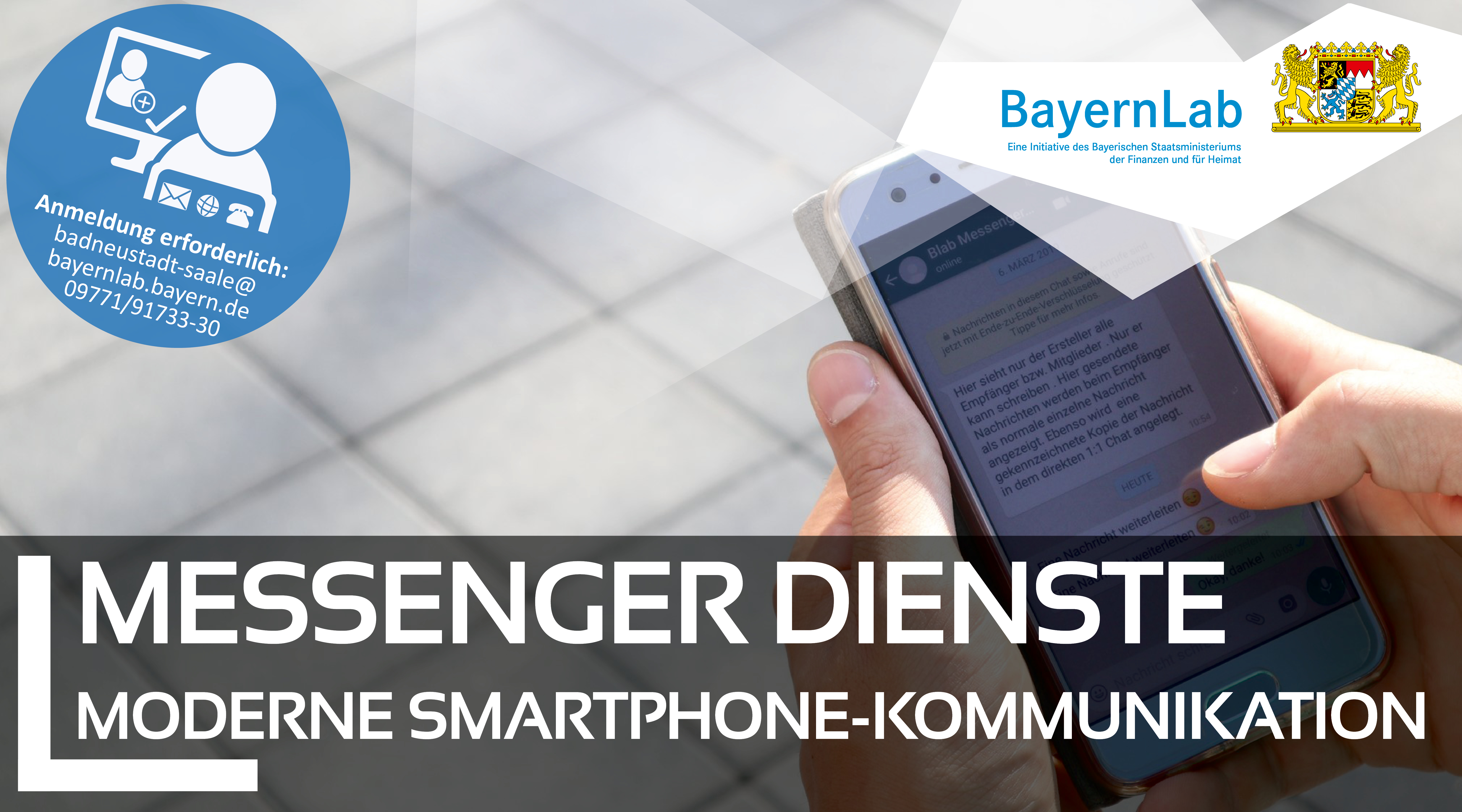 Bitte melden Sie sich rechtzeitig zu den Veranstaltungen unter Tel.: 09771 91733-30 oder per Mail unter badneustadt-saale@bayernlab.bayern.de an. Der Eintritt ist frei.